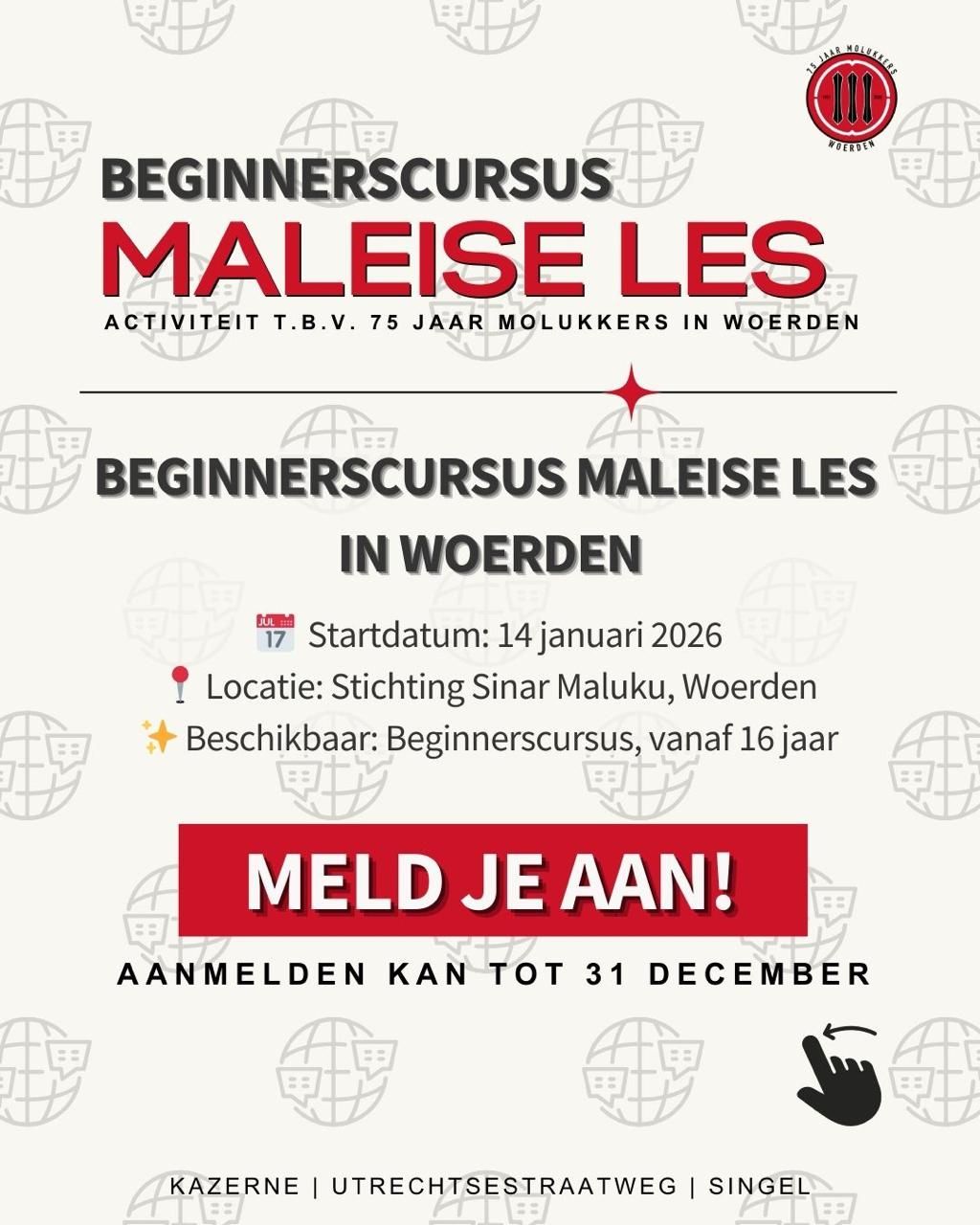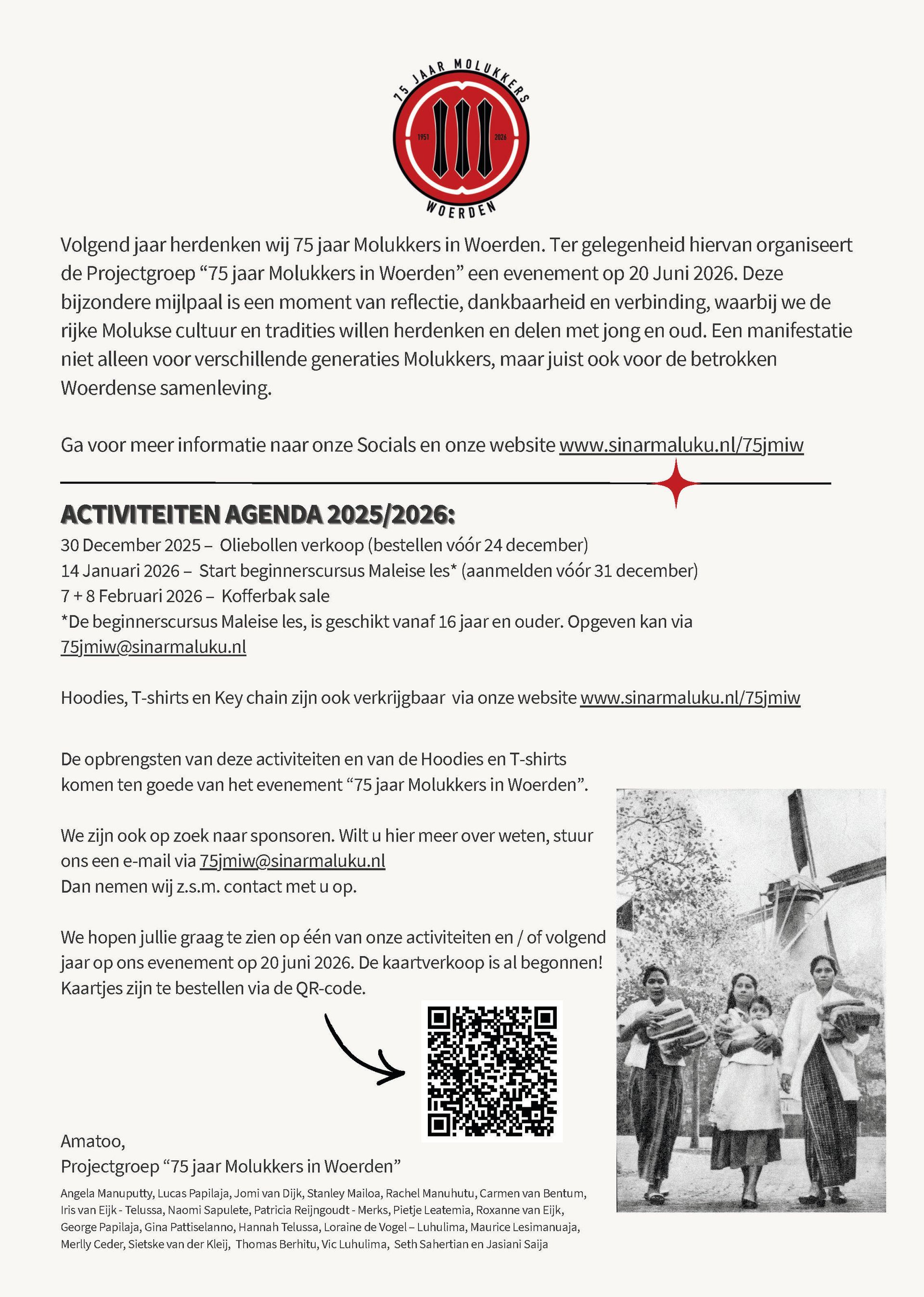 Ter gelegenheid van het 75-jarig verblijf van de Molukse gemeenschap in Woerden willen wij een evenement organiseren.