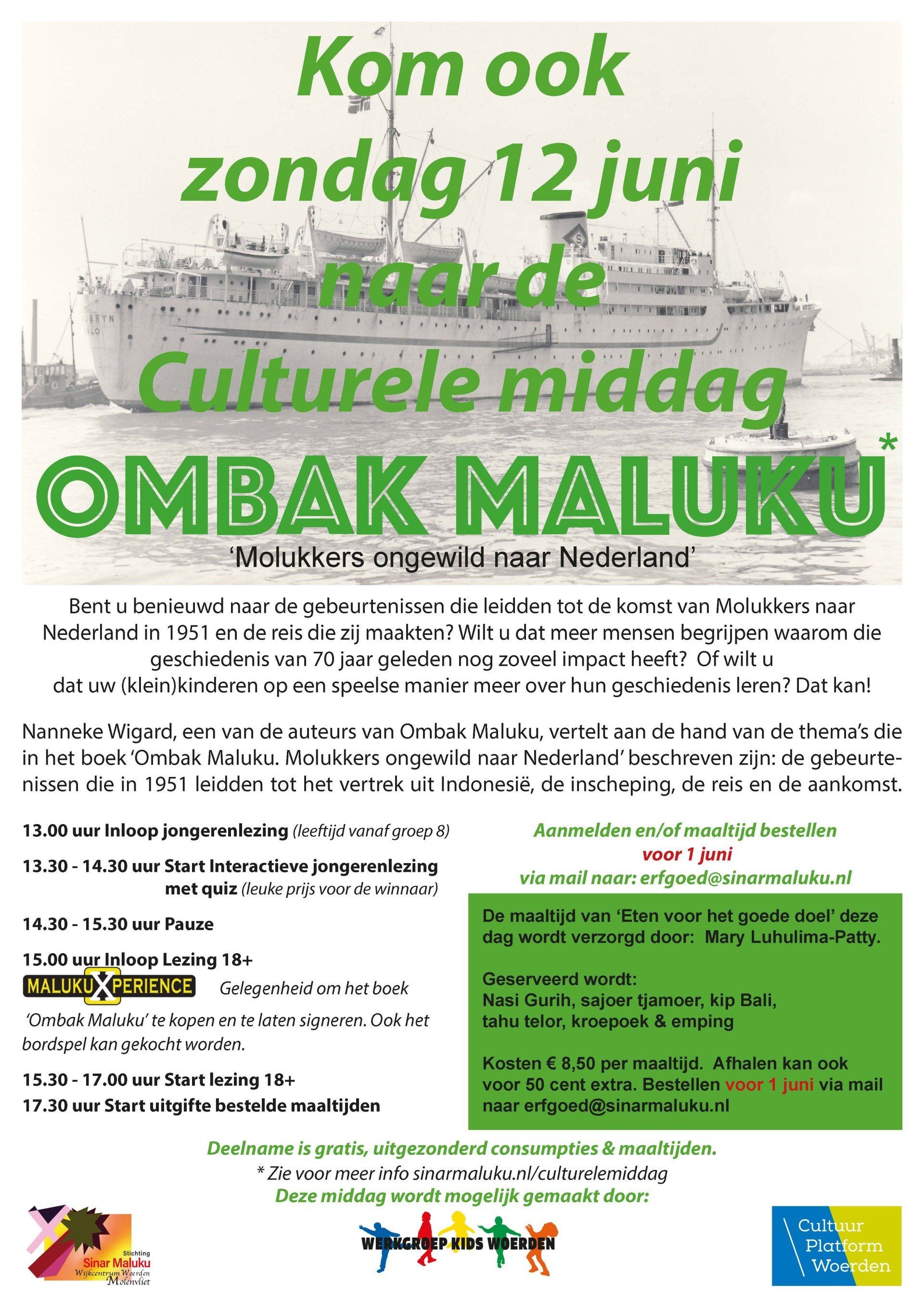 Op deze zondag organiseren we een culturele middag die in het teken staat van onze Molukse geschiedenis. Deze middag wordt mede mogelijk gemaakt door Cultuur Platform Woerden.